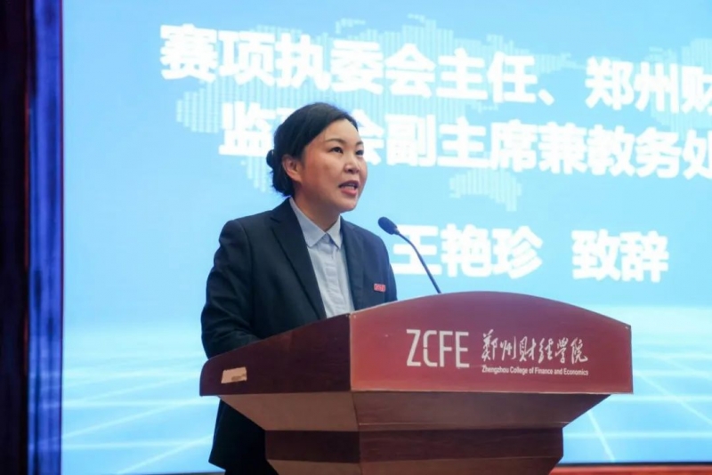 賽項(xiàng)執(zhí)行委員會(huì)主任、鄭州財(cái)經(jīng)學(xué)院監(jiān)事會(huì)副主席兼教務(wù)處處長王艷珍致辭