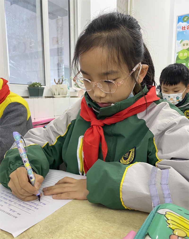 比賽前,教師精選書寫內(nèi)容。比賽中,學(xué)生沉浸在書寫的世界里,專注于每一個(gè)字母的結(jié)構(gòu)、每一個(gè)段落布局,認(rèn)真書寫的模樣令人贊嘆。之后,學(xué)生更是化身“小小演說家”,用流利地道的演說表達(dá)大大的夢(mèng)想。