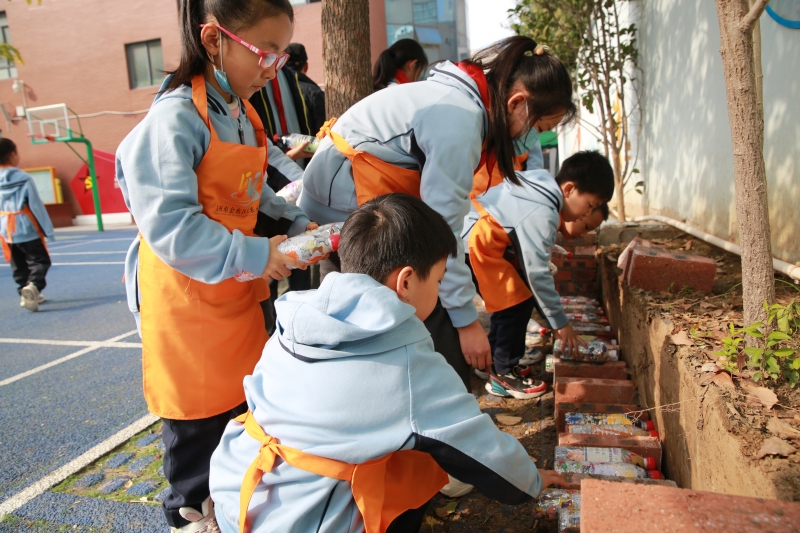 金水區(qū)未來小學(xué)的該項目從今年10月份啟動,經(jīng)過現(xiàn)場勘察、規(guī)劃設(shè)計、制作“生態(tài)磚”、完善方案,截止到11月初,孩子們共制作了1400塊“生態(tài)磚”,已經(jīng)全部應(yīng)用于11月15日當(dāng)天正式施工的花壇圍擋建設(shè)中。