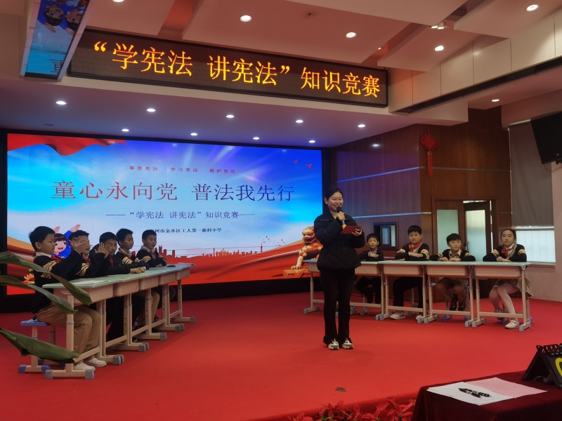 為了加強(qiáng)憲法宣傳教育,進(jìn)一步在青少年學(xué)生中普及憲法知識(shí)、弘揚(yáng)憲法精神、樹(shù)立憲法權(quán)威,構(gòu)建和諧校園、營(yíng)造良好的法治環(huán)境。2023年12月6日,鄭州市金水區(qū)工人第一新村小學(xué)舉辦了“童心永向黨 普法我先行”憲法知識(shí)競(jìng)賽活動(dòng)。