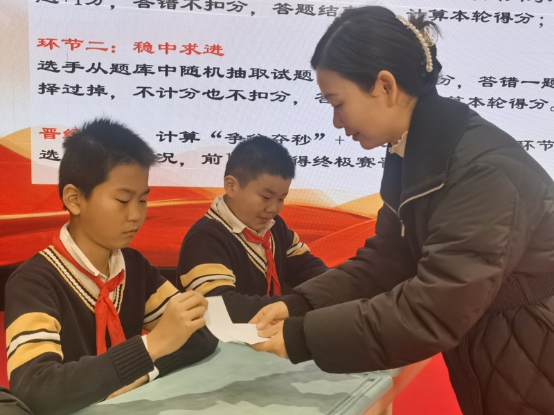 最終彭海瑞、柴旭陽(yáng)、辛明陽(yáng)同學(xué)分別包攬競(jìng)賽前三名,由任成睿等同學(xué)組成的紅色戰(zhàn)隊(duì)獲得“最強(qiáng)團(tuán)隊(duì)獎(jiǎng)”,由陳首言等同學(xué)組成的藍(lán)色戰(zhàn)隊(duì)獲得“最佳合作獎(jiǎng)”,學(xué)校黨支部副書(shū)記藏麗為孩子們頒發(fā)榮譽(yù)證書(shū),并對(duì)他們的現(xiàn)場(chǎng)表現(xiàn)給予高度的贊揚(yáng)。