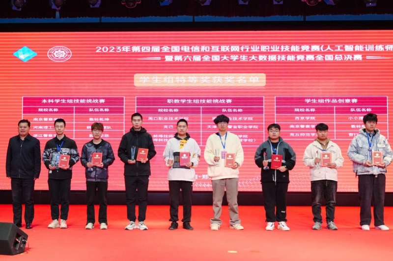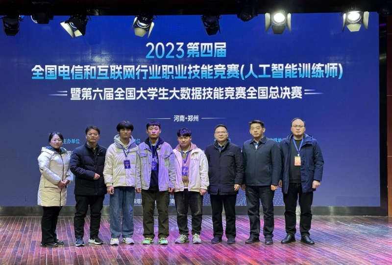 12月9日,第四屆全國電信和互聯(lián)網(wǎng)行業(yè)職業(yè)技能競賽(人工智能訓(xùn)練師)暨第六屆全國大學(xué)生大數(shù)據(jù)技能競賽全國總決賽在河南鄭州閉幕。在周口職業(yè)技術(shù)學(xué)院信息工程學(xué)院教師楚書來、馮騰霄指導(dǎo)下,由孫夢杰、李豪宇、李金普三名同學(xué)所組團隊,代表河南省參加該賽項全國總決賽。經(jīng)過四個小時的多輪比拼,以446分的成績穩(wěn)居榜首,取得職教組特等獎,這也是該校在該賽項上取得的最好成績。楚書來、馮騰霄兩位老師獲得全國典型和互聯(lián)網(wǎng)行業(yè)職業(yè)技能競賽組委會頒發(fā)的“優(yōu)秀指導(dǎo)教師”,學(xué)校榮獲“最佳人才培育單位”。