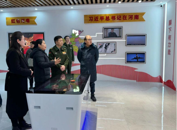 徐政委參觀了學(xué)校智慧黨建思政教育中心。學(xué)校智慧黨建思政教育中心總面積約380平方米,是一個集智慧展廳、VR教室和文化長廊為一體的多功能實踐中心。智慧展廳分百年黨史展、紅色河南區(qū)、多功能體驗區(qū)、英雄楷模區(qū)、宣誓墻五大塊兒,利用滑軌屏、互動云屏、AR/VR技術(shù)、5G云平臺技術(shù)和瀑布自流屏等技術(shù)全方位展示了一百多年來黨領(lǐng)導(dǎo)全國各族人民團結(jié)奮斗取得的偉大成就,讓學(xué)生足不出戶就能云游全國七十多個紅色展館。