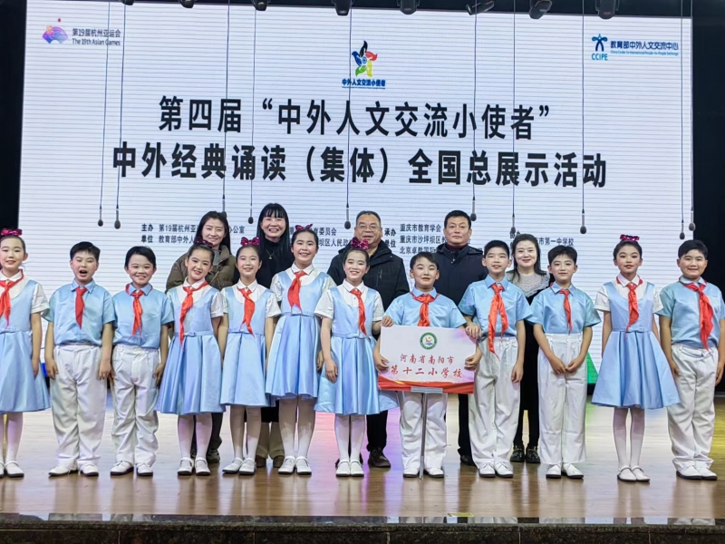 12月15日—17日,在全國(guó)第四屆“中外人文交流小使者”中外經(jīng)典誦讀集體總展示中,南陽(yáng)市兩所學(xué)校代表河南省在全國(guó)總決賽中獲得佳績(jī)。南陽(yáng)市第十二小學(xué)中文原創(chuàng)朗誦作品《習(xí)爺爺來(lái)到我們南陽(yáng)》和外文配音作品《音樂(lè)之聲》榮獲全國(guó)一等獎(jiǎng),南陽(yáng)市第八小學(xué)中外文朗誦《四季詩(shī)韻》榮獲二等獎(jiǎng),南陽(yáng)市教育局榮獲優(yōu)秀組織獎(jiǎng)。