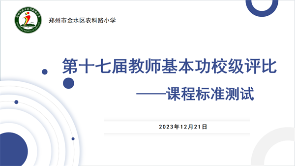 為全面了解教師對《義務(wù)教育課程標準(2022年版)》理解和掌握情況,使新課標理念深入人心,促進教育教學質(zhì)量提升,金水區(qū)農(nóng)科路小學于2023年12月21日下午開展了第十七屆教師基本功校級評比之義務(wù)教育課程標準測評活動。