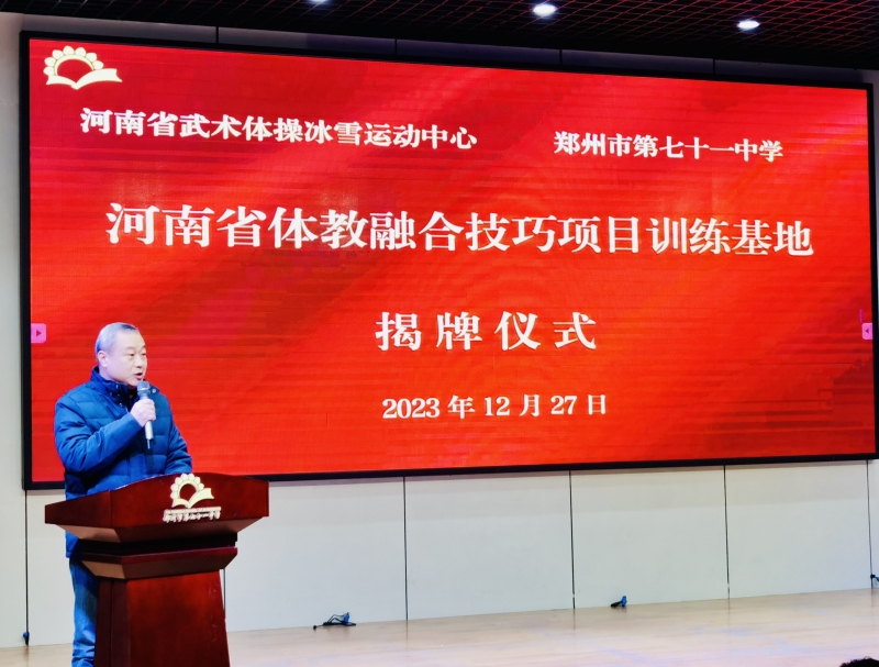 隨后,河南省武術(shù)體操冰雪運(yùn)動(dòng)中心主任晏猛致辭,他表示此次授牌儀式是河南省技巧事業(yè)的大喜事,省武體冰中心將繼續(xù)支持七十一中技巧運(yùn)動(dòng)的發(fā)展,希望七十一中以此為契機(jī),借助多方力量,積極探索技巧運(yùn)動(dòng)發(fā)展的新方法和新途徑,更好地發(fā)展技巧運(yùn)動(dòng),為河南技巧事業(yè)培養(yǎng)更多的后備人才,為體育河南建設(shè)增光添彩。
