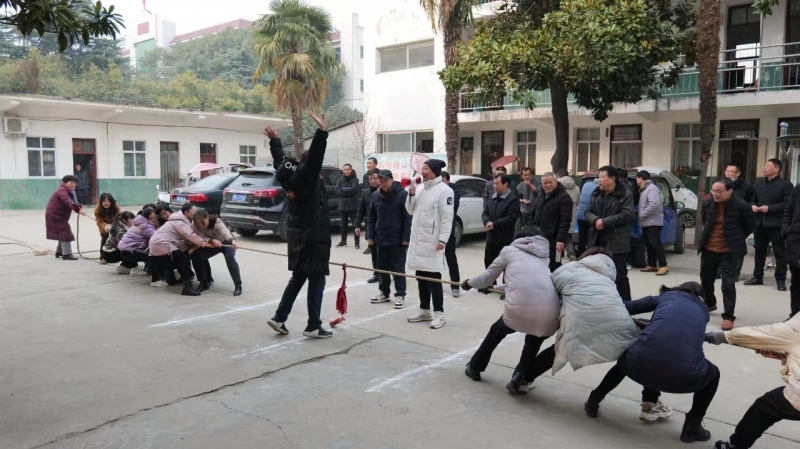 最激烈的當(dāng)屬拔河比賽,4名男隊(duì)隊(duì)長(zhǎng)和2名女隊(duì)隊(duì)長(zhǎng)早早帶著抽簽分配的隊(duì)友等候在活動(dòng)場(chǎng)地,分別為自己的團(tuán)隊(duì)取了別致的隊(duì)名:立德隊(duì)、樹(shù)人隊(duì)、初心隊(duì)、使命隊(duì)、改革隊(duì)……首先開(kāi)始的是女子拔河比賽,隨著一聲哨響,灑脫、勇敢、力量在此刻展現(xiàn)。在歡呼聲、喝彩聲、笑聲中,女子拔河比賽決出冠軍。經(jīng)過(guò)再次抽簽,男子拔河比賽分組產(chǎn)生。咬緊牙、攥緊繩、前腿弓、后腿蹬,標(biāo)準(zhǔn)的動(dòng)作、統(tǒng)一的信念、統(tǒng)一的號(hào)子,在反復(fù)拉鋸中,第一組冠軍產(chǎn)生;研究戰(zhàn)術(shù)、分配力量、調(diào)整次序,智慧與力量在此刻完美融合,盡情釋放“洪荒之力”,在反復(fù)僵持的較量中,第二組冠軍產(chǎn)生。男子決賽開(kāi)始了,啦啦隊(duì)員盡情吶喊,參賽隊(duì)員奮力拼搏,歡笑聲、吶喊聲沖破云霄。最終,立德隊(duì)以“磅礴之力”贏得總冠軍。