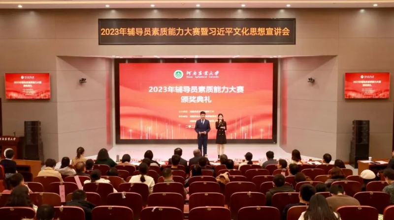 12月26日,河南農(nóng)業(yè)大學(xué)在龍子湖校區(qū)召開(kāi)2023年輔導(dǎo)員素質(zhì)能力大賽暨習(xí)近平文化思想宣講會(huì),校黨委副書(shū)記游舸,副校長(zhǎng)楊喜田,校黨委委員、黨委宣傳部部長(zhǎng)鄧振營(yíng),校黨委學(xué)生工作部部長(zhǎng)、學(xué)生處處長(zhǎng)、武裝部部長(zhǎng)徐峰,校團(tuán)委書(shū)記賈云飛出席大賽。校黨委委員、黨委統(tǒng)戰(zhàn)部部長(zhǎng)陳書(shū)章,經(jīng)濟(jì)與管理學(xué)院黨委書(shū)記王宏立,文法學(xué)院黨委書(shū)記牛娟,理學(xué)院黨委書(shū)記王照蘭,外國(guó)語(yǔ)學(xué)院黨委書(shū)記王燕萍,國(guó)際教育學(xué)院黨委書(shū)記趙寧,校黨委宣傳部副部長(zhǎng)陳璽,校團(tuán)委副書(shū)記雷雯,河南省青年理論宣講專家、馬克思主義學(xué)院劉寧?kù)o擔(dān)任決賽評(píng)委。各學(xué)院黨委副書(shū)記、專兼職輔導(dǎo)員以及學(xué)生代表現(xiàn)場(chǎng)觀摩了大賽。
