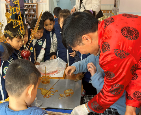 做棉花糖、蒸年糕、糖葫蘆、滾湯圓、捏面人、畫紅包、泥咕咕、賞皮影戲、印版畫……孩子們在文化氣息濃烈的氛圍中感受著中華優(yōu)秀傳統(tǒng)文化的魅力,在項目豐富多元的游園體驗中盡情品嘗年味、暢玩年俗、樂享年趣。