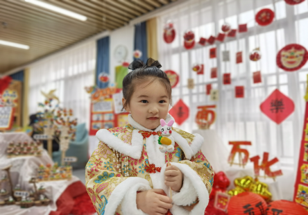 在深冬的詩情畫意中,身著節(jié)日盛裝的孩子們伴著園歌“愛的小窩”,欣賞完藝術(shù)展,接過園長媽媽親手送出的“玩美”體驗卡,系上溢滿祝福的“福氣帶”,迫不及待地開啟了一場盡享玩美的游園會。
