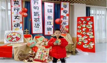 幼兒園的教師和孩子們將甲辰新歲與新年味道、民俗工藝、非遺文化深入融合,在沉浸式“創(chuàng)”、互動式“觀”、體驗式“悟”中,使傳統(tǒng)文化在藝術(shù)中多彩傳承,讓童趣世界在畫作中繽紛展現(xiàn),將民族智慧在內(nèi)心中生根成長。