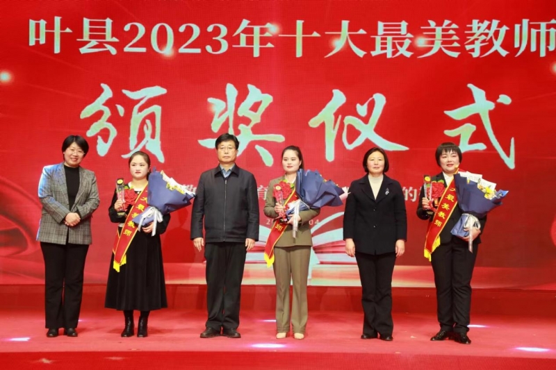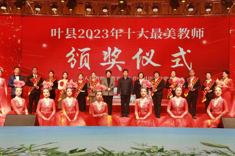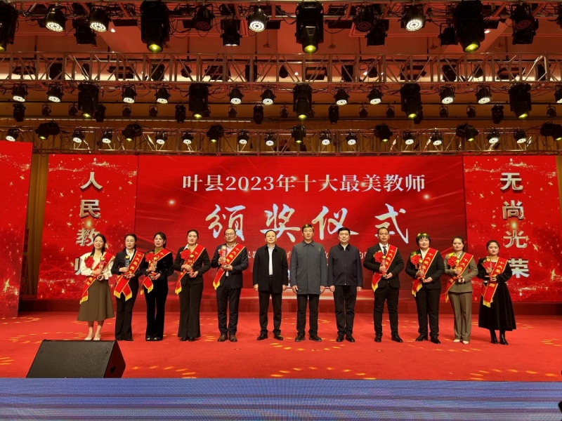 為進(jìn)一步宣傳教書(shū)育人典型、營(yíng)造尊師重教氛圍,推動(dòng)葉縣教育事業(yè)高質(zhì)量發(fā)展,1月4日晚,由葉縣教育體育局主辦的葉縣2023年“十大最美教師”頒獎(jiǎng)儀式在昆北新城會(huì)議中心舉行。葉縣縣委書(shū)記徐延杰,平頂山市教體局黨組成員、副局長(zhǎng)蘇紅英,葉縣縣長(zhǎng)文曉凡,“葉縣最美教師”及部分縣級(jí)領(lǐng)導(dǎo)出席頒獎(jiǎng)儀式。