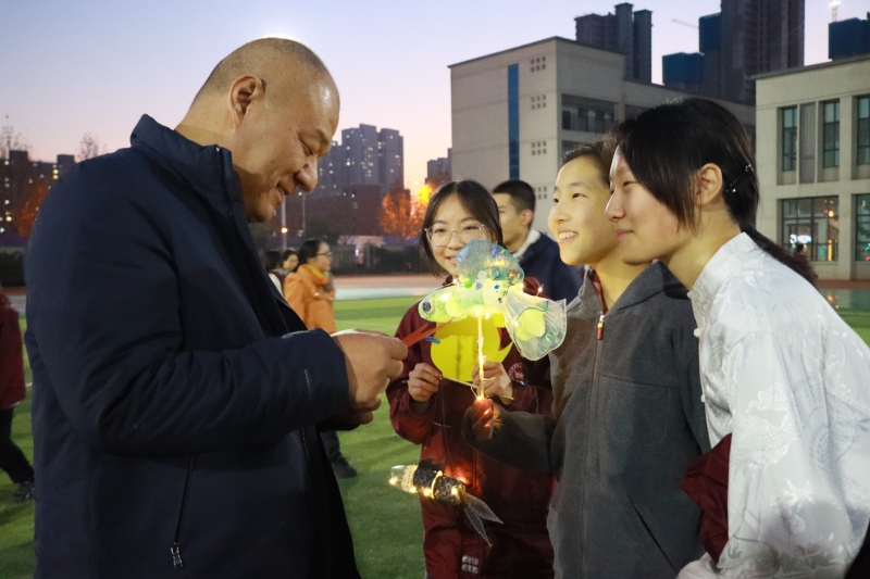 在活動開始前,陳校長采用和小主持人一問一答的方式,親切地告訴孩子們,魚燈是他一份兒時的回憶,一份情感的寄托,一份文化的傳承,也希望孩子們能夠通過這次活動能夠感受到中華優(yōu)秀傳統(tǒng)文化的魅力,也為自己的中學(xué)生活留下一段難忘的回憶。隨著陳校長和主持人的宣布,“魚躍龍門”主題燈展活動正式開始。