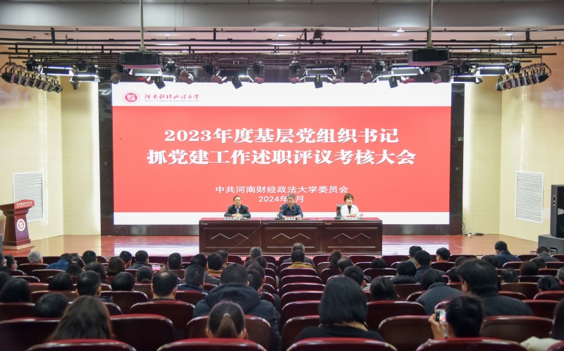 1月5日,河南財(cái)經(jīng)政法大學(xué)在鄭東新區(qū)召開2023年度基層黨組織書記抓黨建工作述職評議考核大會。校黨委書記、校長司林勝,校黨委副書記高京燕,校黨委副書記、工會主席李觀虎出席會議,全校43個(gè)院系級黨組織書記、副書記、教師黨支部書記和黨員代表參加會議。會議由高京燕主持。