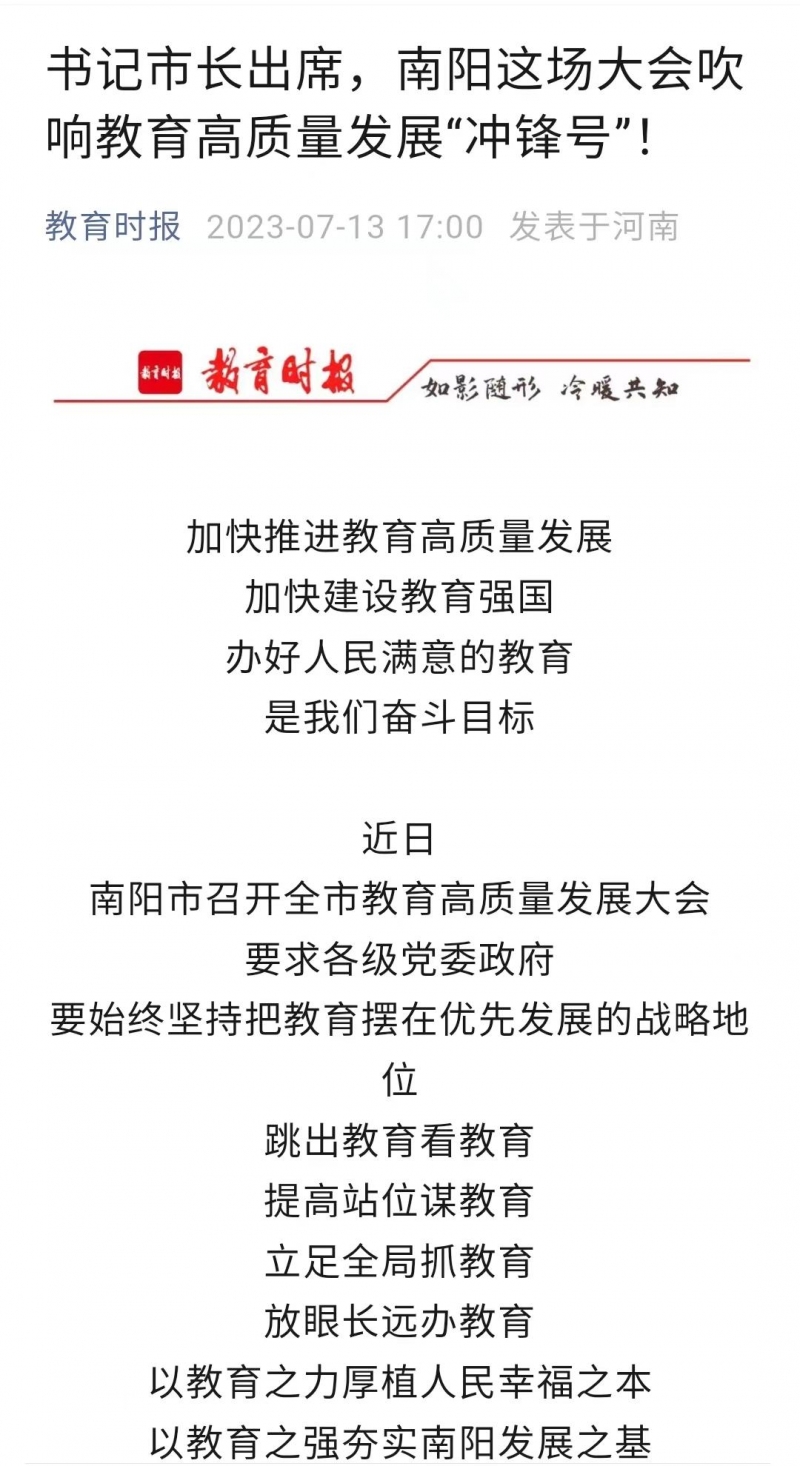 二、南陽市召開教育高質(zhì)量發(fā)展大會,吹響南陽教育高質(zhì)量發(fā)展“沖鋒號”
