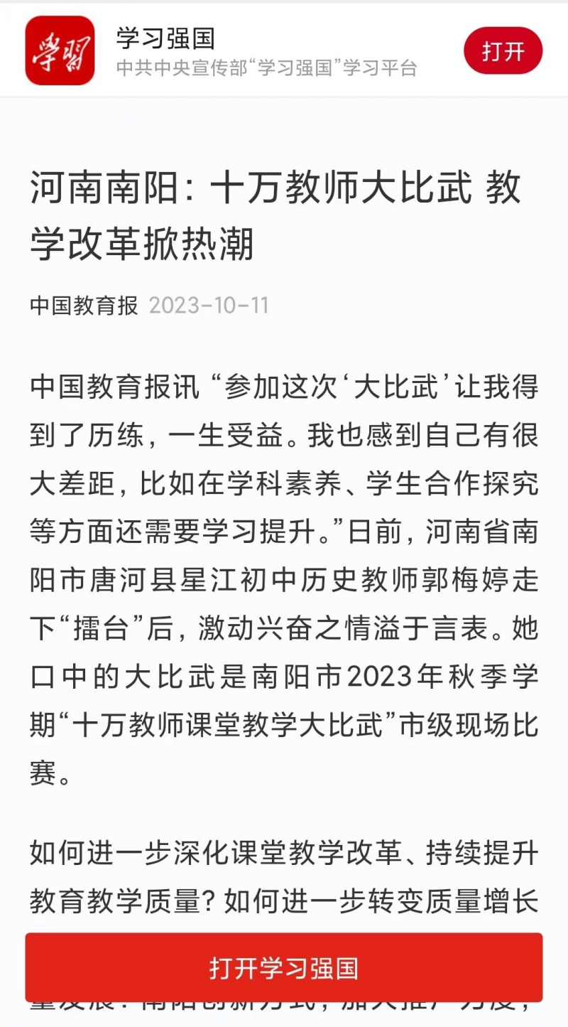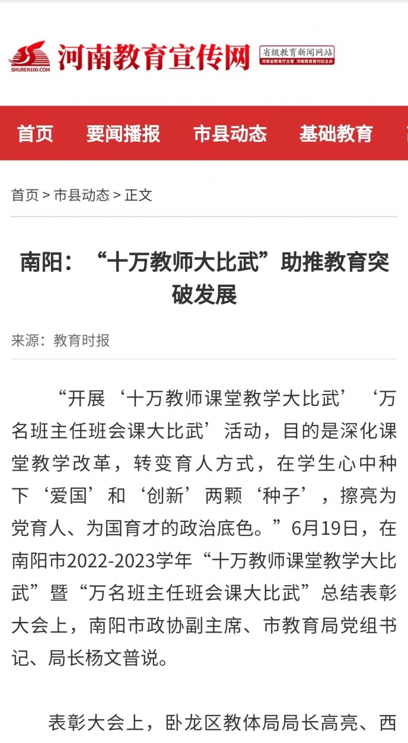 三、《中國教育報(bào)》再次聚焦南陽 “萬名班主任班會課大比武” “十萬教師大比武”再掀課改熱潮。