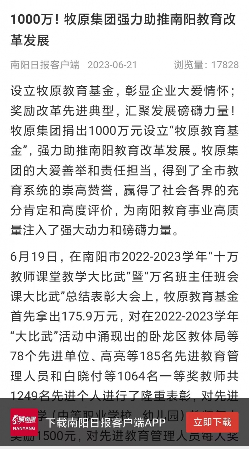 四、南陽市召開“十萬教師大比武”總結(jié)表彰大會,牧原集團(tuán)1000萬基金強(qiáng)力助推南陽教育改革發(fā)展