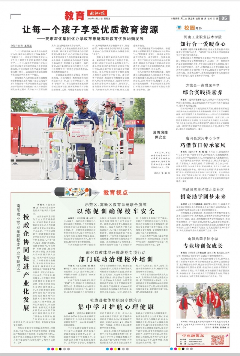 為充分展示南陽教育發(fā)展成就,全面總結(jié)南陽教育改革創(chuàng)新經(jīng)驗(yàn),通過新聞記錄南陽教育改革發(fā)展精彩鏡頭,見證南陽教育高質(zhì)量發(fā)展的顯著成效,南陽市教育局從2023年在市級以上新聞媒體上發(fā)表的276篇南陽教育新聞中,通過教育專家、媒體記者認(rèn)真評議,從不同側(cè)面評選出2023年南陽教育10大新聞。