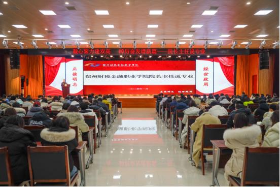 為深入學(xué)習(xí)貫徹黨的二十大精神和習(xí)近平總書記關(guān)于職業(yè)教育工作的重要指示精神,落實(shí)立德樹人根本任務(wù),優(yōu)化專業(yè)結(jié)構(gòu),提升專業(yè)服務(wù)能力,加強(qiáng)專業(yè)內(nèi)涵建設(shè),1月16日下午,鄭州財(cái)稅金融職業(yè)學(xué)院召開2024年“院長(zhǎng)主任說專業(yè)”專題報(bào)告會(huì)。院長(zhǎng)李曉東、黨委副書記董娣、副院長(zhǎng)施長(zhǎng)春、工會(huì)主席閆浩和全體教職工參加會(huì)議,會(huì)議由教務(wù)處處長(zhǎng)耿聰慧主持。
