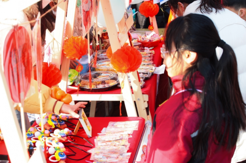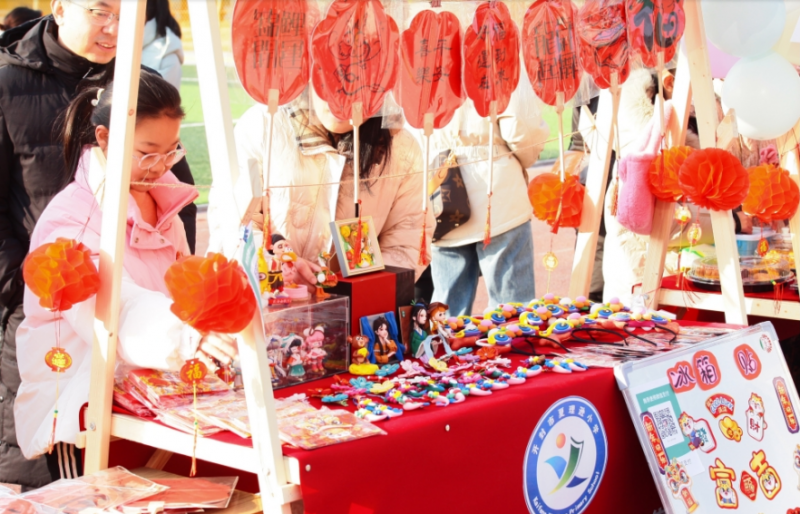 年貨大集秩序井然,熱鬧非凡。獨具特色的宋室風箏、朱仙鎮(zhèn)木版年畫、宋都面塑等非遺展位均是中華優(yōu)秀傳統(tǒng)文化鮮活、具體的體現(xiàn)。小顧客們紛紛駐足體驗,流連忘返。附小的隊員們敲著鑼吆喝著叫賣自己搖的元宵,禹王臺區(qū)小學的隊員們蒸制的棗花饃、黏豆包更是彩頭滿滿。別具開封特色的李記“御坊齋”展位出售的開封特色小吃“蜜三刀”、冰糖葫蘆、棉花糖,以及香噴噴的焦糖瓜子、碧根果、大白兔奶糖勾起了大家的購買欲。還有手工編織、氣球花、人臉彩繪、衍紙畫、投壺套圈的各項互動體驗。