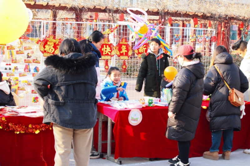 伴隨著鳴鑼“開市”,轄區(qū)蘇村小學少先隊員們的非遺盤鼓表演《鑼鼓喧天賀龍年》敲出了少先隊員們喜迎龍年的精氣神;夏理遜小學低年級的四名小隊員們帶來的《年畫娃娃》,唱出了孩子們對傳統(tǒng)年俗文化的熱愛;返鄉(xiāng)大學生代表也用曼妙的舞姿展現(xiàn)出青春的朝氣和對家鄉(xiāng)的熱愛;來自中央戲劇學院曲藝表演系學生劉一鳴和五一小大隊輔導員李清豐老師合說的相聲《學外語》更是妙語連珠,贏得了大伙兒的滿堂彩。