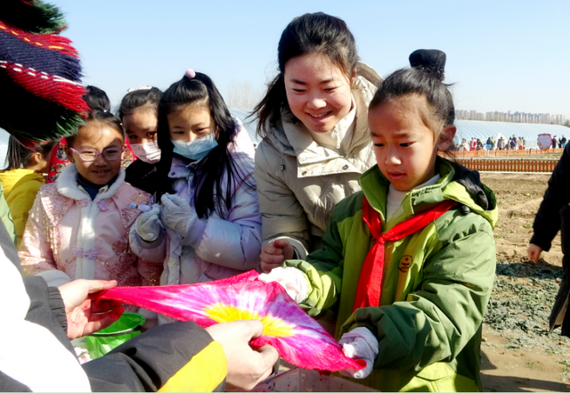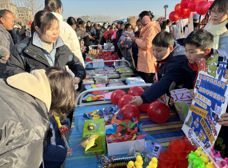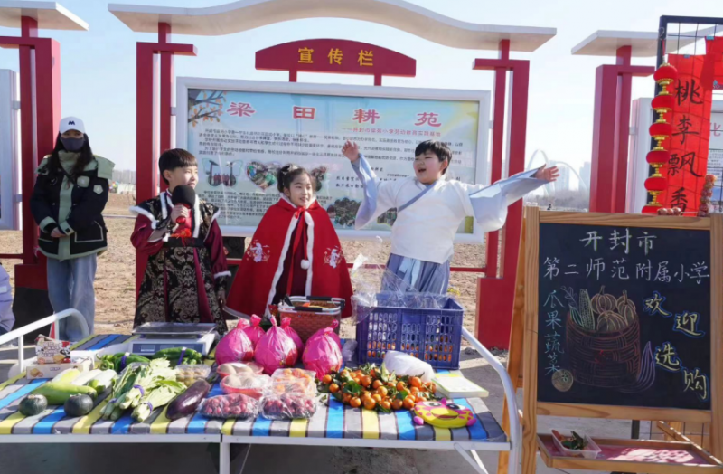 糖葫蘆、爆米花、紅對(duì)聯(lián),濃濃的年味兒撲面而來(lái);蔬菜、水果、傳統(tǒng)糕點(diǎn),叫賣聲、吆喝聲此起彼伏;泥塑、扎染、書簽,臉譜、團(tuán)扇、國(guó)畫、剪紙,現(xiàn)場(chǎng)制作、講解推銷,完美配合,圖書、玩具、文具,熱情分享,物物交換……1月28日的開封示范區(qū)中小學(xué)勞動(dòng)實(shí)踐基地?zé)狒[非凡。一場(chǎng)“祥龍迎春到,集樂(lè)豐收年”年味兒市集活動(dòng)成了孩子們歡樂(lè)的海洋。