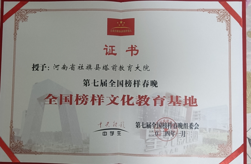 1月12日,在中央廣播電視總臺(tái)中央新影中學(xué)生頻道錄制的第七屆全國(guó)榜樣春晚舉行,來(lái)自全國(guó)近三十個(gè)代表團(tuán)、藝術(shù)團(tuán)的500余人參加活動(dòng)。現(xiàn)場(chǎng)通過(guò)榜樣人物展示鑼鼓、古箏、書(shū)畫(huà)、歌唱、朗誦、舞蹈等形式,詮釋了時(shí)代榜樣的新志向、新思想、新動(dòng)態(tài)和新風(fēng)貌。節(jié)目錄制現(xiàn)場(chǎng),來(lái)自社旗縣興隆鎮(zhèn)的秦遠(yuǎn)晴、秦建臻兄弟倆一同獲得“全國(guó)榜樣教育百?gòu)?qiáng)人物”,而傾注兄弟倆心血的塔前村“教育大院”也被評(píng)為“全國(guó)榜樣文化教育基地”。
