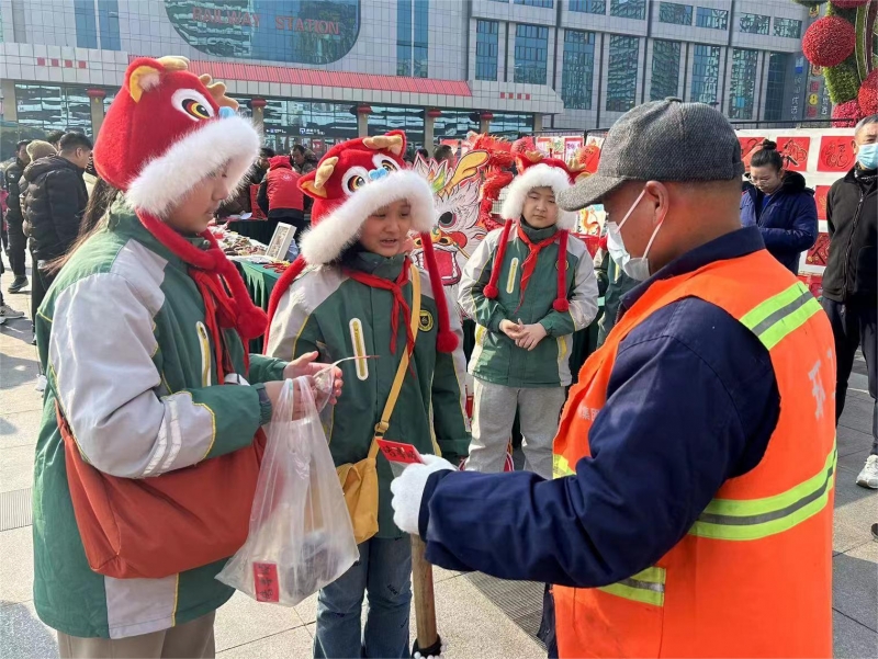 1月29日,新春將至,正值春運時期,鄭州市二七區(qū)隴西小學(xué)以全國八大交通樞紐之一——鄭州火車站東廣場作為社會實踐場所,以“迎新年、送祝福”開啟了學(xué)生的實踐之旅,讓學(xué)生將知識轉(zhuǎn)化為行動,用實踐來提升能力。