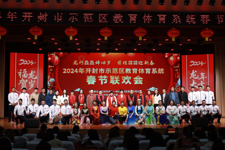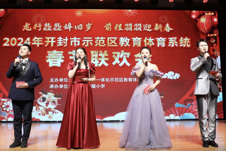 一元復(fù)始,萬象更新。2024年2月1日下午,“龍行龘龘辭舊歲 前程朤朤迎新春”2024年開封市示范區(qū)教育體育系統(tǒng)春節(jié)聯(lián)歡會(huì)在金耀小學(xué)隆重舉行,現(xiàn)場張燈結(jié)彩,洋溢著濃濃的年味兒。示范區(qū)黨工委委員、宣傳部部長王志英,示范區(qū)三級調(diào)研員李麗,示范區(qū)黨工委統(tǒng)戰(zhàn)部常務(wù)副部長王俊濤,示范區(qū)教體局黨組書記、局長聶愛軍,示范區(qū)文化和旅游局局長高紀(jì)武及示范區(qū)教體局全體班子成員同教體系統(tǒng)近千名教職工歡聚一堂,共同迎接新春佳節(jié)的到來。