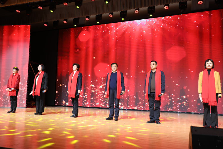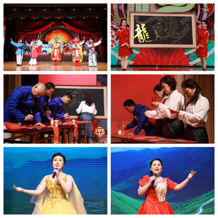 聯(lián)歡會(huì)在熱鬧的開場舞《吉祥飛舞》中開啟“啟春·揚(yáng)帆”“迎春·納福”“暢春·耕耘”三個(gè)篇章,歌曲舞蹈《大中原》《科目三》《相親相愛》《節(jié)日歡歌》、國風(fēng)走秀《華夏風(fēng)韻》、戲曲聯(lián)唱《賣水》《對花》《劉大哥講話理太偏》、情景朗誦《最美的姿態(tài)》、歌曲聯(lián)唱《滾滾長江東逝水》《枉凝眉》《天竺少女》《好漢歌》《相親相愛一家人》、才藝串燒《筆歌潑墨迎新春》等節(jié)目輪番上演,一個(gè)個(gè)精彩的節(jié)目讓觀眾掌聲不斷,一段段傾心的表演讓活力競相釋放,現(xiàn)場喝彩聲、笑聲不斷。而穿插其中的《你比劃我猜》《搶凳子》游戲和幸運(yùn)大抽獎(jiǎng)環(huán)節(jié),不僅讓聯(lián)歡會(huì)驚喜連連,也將歡樂的氣氛推向一個(gè)又一個(gè)高潮。演出結(jié)束后,與會(huì)領(lǐng)導(dǎo)與演職人員合影留念。