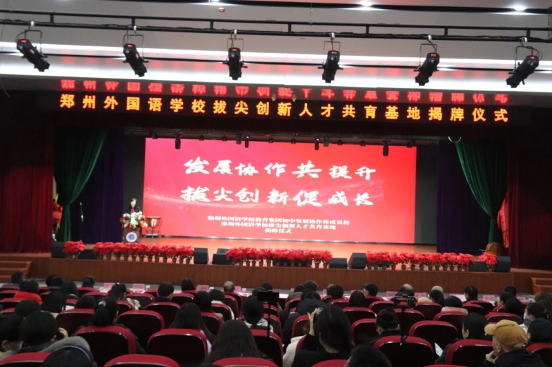 1月30日,鄭州外國語學校教育集團惠濟校區(qū)鄭州外國語學校教育集團初中發(fā)展協(xié)作體成員校暨鄭州外國語學校拔尖創(chuàng)新人才共育基地揭牌儀式在鄭州惠濟外國語中學舉行。鄭州外國語學校校長王曉強,惠濟區(qū)教育局黨組書記、局長王新芳,鄭州外國語學校總務主任崔然,鄭州惠濟外國語中學校長周春紅,共同為鄭州外國語學校教育集團初中發(fā)展協(xié)作體成員校暨鄭州外國語學校拔尖創(chuàng)新人才共育基地揭牌。