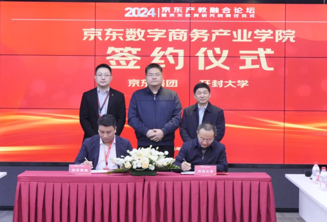 2月1日上午,開(kāi)封大學(xué)與京東集團(tuán)共建“鄉(xiāng)村振興產(chǎn)業(yè)學(xué)院”簽約儀式在京東集團(tuán)總部隆重舉行。京東集團(tuán)副總裁馮全普、京東教育研究院院長(zhǎng)孫建、京東零售教育大客戶部校企合作負(fù)責(zé)人喬治,開(kāi)封大學(xué)校長(zhǎng)王德如、副校長(zhǎng)李治等出席儀式。