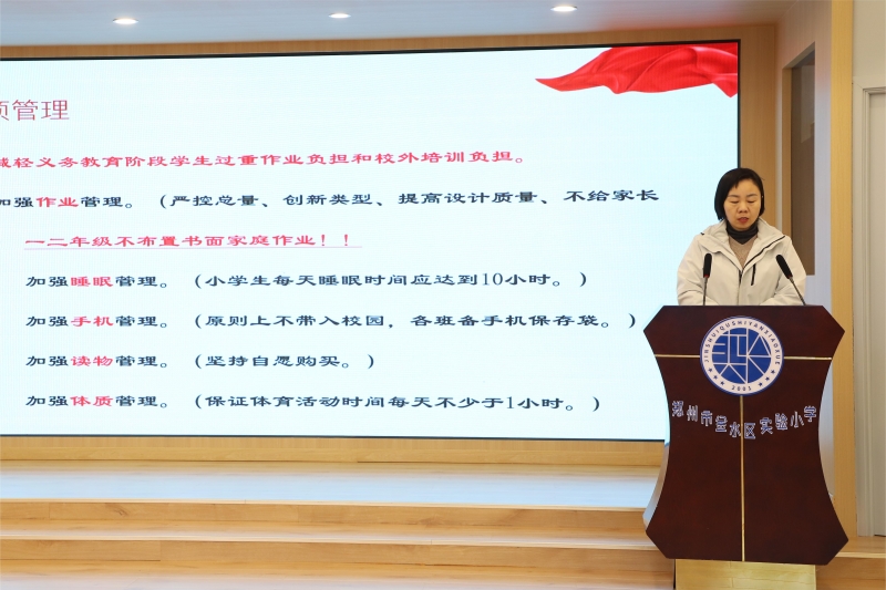 學(xué)校教導(dǎo)主任弓莉紅帶領(lǐng)全體教師重溫“雙減”、五項管理的重要內(nèi)容,強調(diào)新學(xué)期要繼續(xù)深入學(xué)習(xí)貫徹“雙減”和五項管理精神,深化教育改革,提升課堂教學(xué)質(zhì)量,優(yōu)化教學(xué)方式,全面壓減作業(yè)總量,構(gòu)建良好的教育生態(tài)。