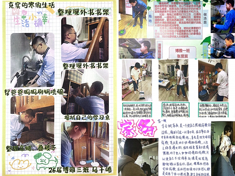 寒假過(guò)后,學(xué)生對(duì)道德與法治學(xué)科作業(yè)反饋良好,七年級(jí)博雅三班袁一頔說(shuō):“家務(wù)勞動(dòng)讓我增進(jìn)了對(duì)父母的理解,知道要如何感激、體貼父母;年俗文化的搜集整理不僅讓我對(duì)我們國(guó)家的傳統(tǒng)文化有了更深的了解,而且還鍛煉了我制作視頻的能力;時(shí)政小報(bào)也讓我深刻意識(shí)到我們每個(gè)人的命運(yùn)同國(guó)家的命運(yùn)是緊密相連的。”