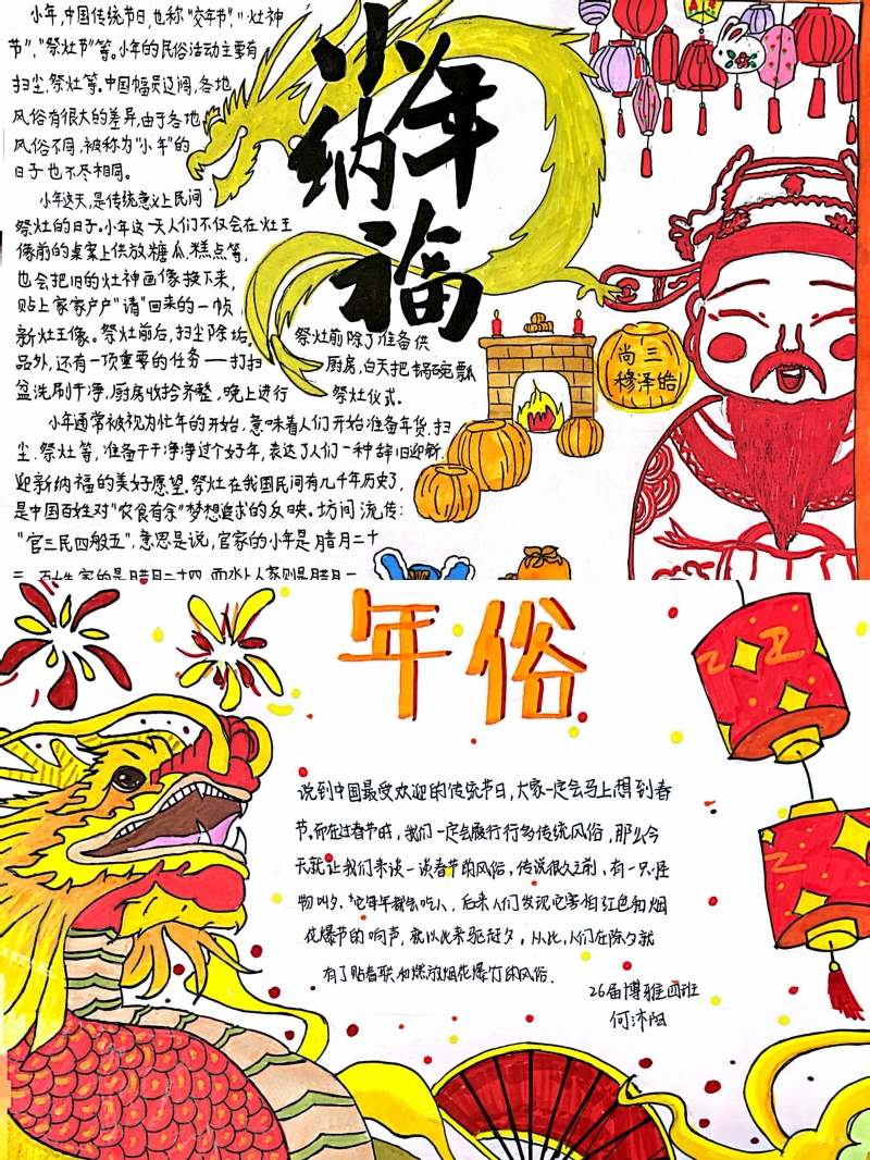 年俗文化的呈現(xiàn)形式,經(jīng)教研組商討采取了視頻或圖文的形式讓學(xué)生自主選擇,充分調(diào)動(dòng)學(xué)生的主觀能動(dòng)性,同時(shí)也希望學(xué)生在寒假期間在了解傳統(tǒng)文化的過(guò)程中,能夠鍛煉學(xué)生對(duì)資料的整合能力。