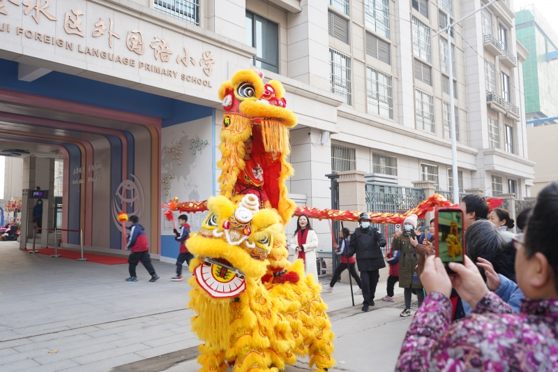2024年2月26日上午,靜謐了一個(gè)寒假的鄭州市金水區(qū)外國語小學(xué)的校園再次恢復(fù)了熱鬧和喧囂。一場(chǎng)精彩紛呈的舞龍舞獅盛宴,為孩子們的歸來增添了無盡的歡樂。鄭州市金水區(qū)外國語小學(xué)黨支部書記、校長邵玉慧攜領(lǐng)導(dǎo)班子成員、教師代表早早地來到校門口熱情歡迎每一位回歸的孩子。同學(xué)們身著整齊、拿著喜慶的燈籠,臉上洋溢著期待和激動(dòng)的笑容如約而至。