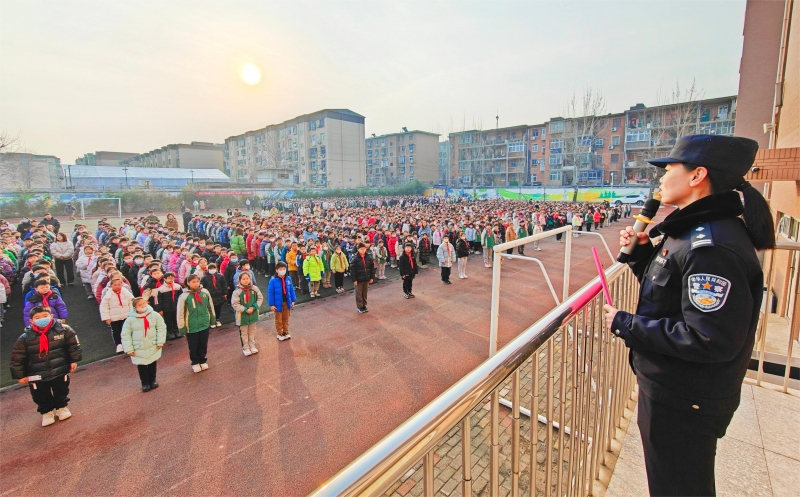 開學典禮分校區(qū)進行。隴西小學南校區(qū)邀請二七區(qū)保全社區(qū)民警楊靜走進學校,為學生帶來了“開學安全第一課”主題教育。楊靜圍繞學生交通安全、消防安全、用電安全等進行了宣講,有利于提高學生安全意識,使其養(yǎng)成安全習慣。