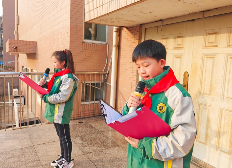 學生代表胡晉豪表達了對新學期校園學習與生活的憧憬。他鼓勵同學們樹立學習目標,腳踏實地,揚帆起航。大隊輔導員為全體學生送上最美好的龍年祝福,并對學生的日常規(guī)范做出要求。