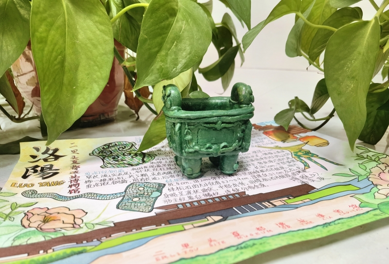 每個地方的博物館正是“活”著的歷史,每一件藏品都曾見證過一段歲月,與它們相見,便是與歷史的一次對話。學生運用泥土、木材、紙張等材料,精心制作了司母戊鼎、“漢并天下”瓦當、干欄式建筑、陶院落、銅鼎、人面魚紋彩陶盆等珍貴歷史文物,不僅形似,而且神似,呈現(xiàn)的作品令人眼前一亮,充分展現(xiàn)了他們對歷史文化的熱愛和探究精神。