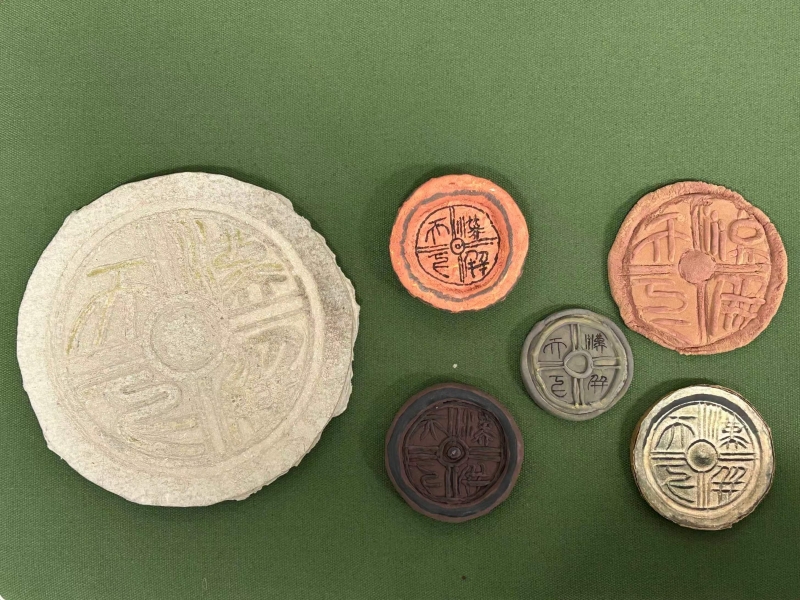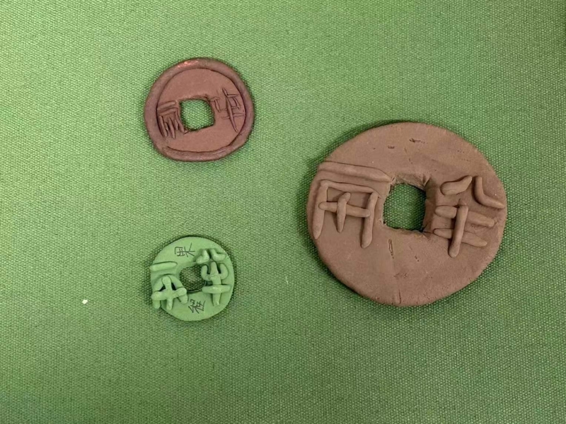 在作品推介時,同學們還紛紛亮出絕活:有的同學說,自己制作的司母戊鼎,作為中國商代晚期的青銅器代表,其復雜的紋路和精細的鑄造工藝在作品中得到了完美呈現(xiàn);有的同學表示,“漢并天下”瓦當以其獨特的文字設計和歷史意義,能讓大家感受到漢代建筑藝術的魅力;還有的表示,自己制作的干欄式建筑和陶院落展示了古人的居住環(huán)境,銅鼎、骨笛、人面魚紋彩陶盆等文物也重現(xiàn)了它們的歷史風采;更有的說,在制作秦半兩錢時,不僅復制了錢幣的外形,還仔細研究了錢幣上的文字和圖案,使得這一作品既具有歷史意義又具有藝術價值。