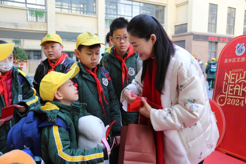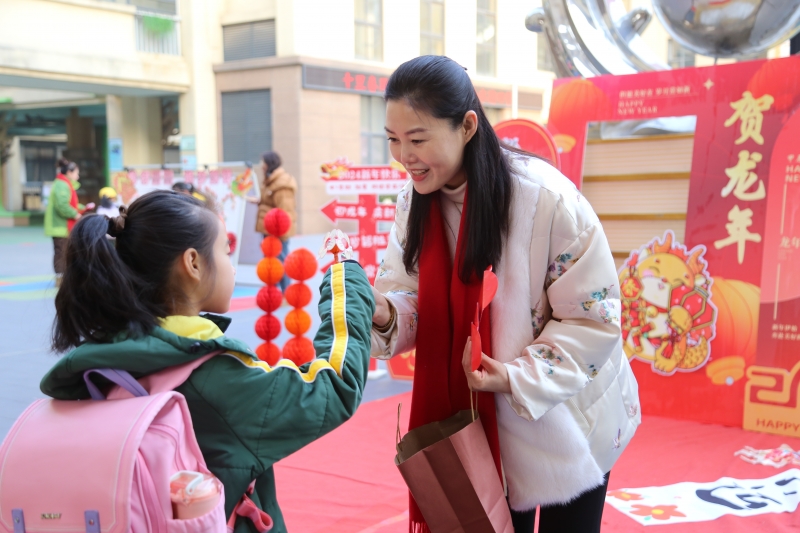 金水區(qū)文源小學黨支部書記、校長黃延穎帶領領導班子成員和老師們?yōu)楹⒆觽儨蕚淞诵聦W期紅包,孩子們只要能夠答對紅包里與龍相關的傳統(tǒng)文化知識,便可獲得五顏六色的糖果,開啟甜蜜的新學期生活。
