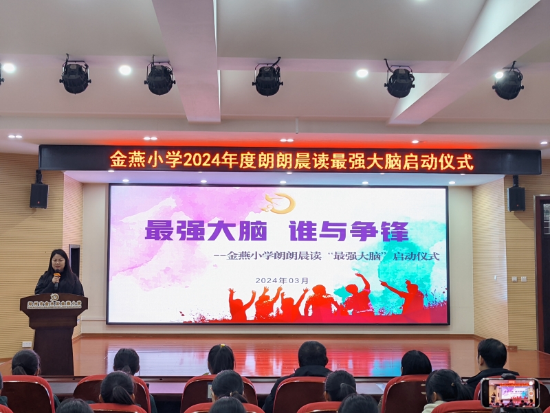 劉夢悅主任回顧了“朗朗晨讀 最強(qiáng)大腦”活動(dòng)前幾屆的開展歷程:2022屆有12名、2023屆有11名同學(xué)完成了《朗朗晨讀系列3》全冊(cè)60首詩詞背誦,獲得首屆、第二屆“最強(qiáng)大腦”獎(jiǎng)杯,學(xué)校公眾號(hào)成立了“金燕少年說”個(gè)人專欄,榮獲“最強(qiáng)大腦”獎(jiǎng)杯的學(xué)生姓名永久保留在《朗朗晨讀系列讀本》中。她強(qiáng)調(diào):朗朗晨讀最強(qiáng)大腦,比的不是成績,不是智商,拼的是個(gè)人的自律,考驗(yàn)的是對(duì)時(shí)間的規(guī)劃,鼓勵(lì)同學(xué)們懷揣夢想,勇于挑戰(zhàn),爭做“最強(qiáng)大腦”。