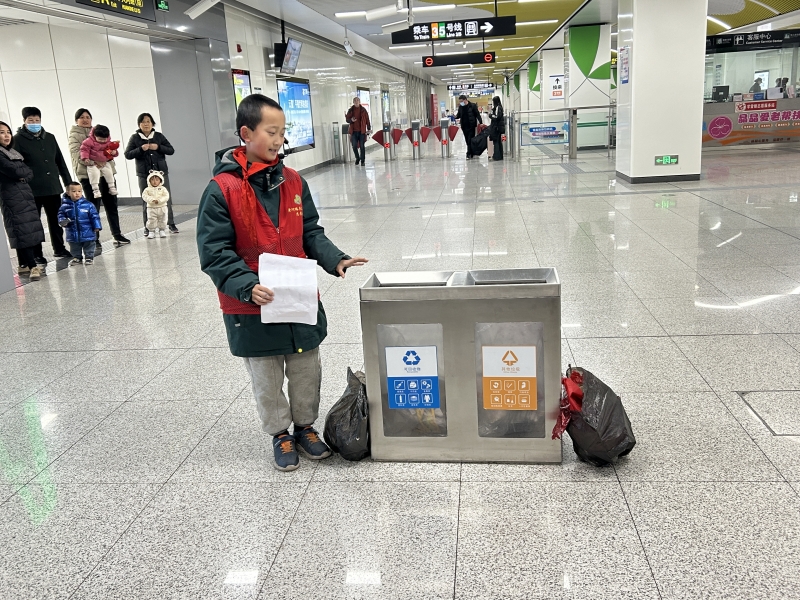 地鐵的正常運(yùn)行除了需要車輛檢修員、地鐵駕駛員、安檢人員等相互配合,地鐵站務(wù)員的工作也是尤為重要。簡(jiǎn)單的講解培訓(xùn)后,小志愿者們搖身一變,化身“小小站務(wù)員”,使用規(guī)范用語與禮儀動(dòng)作,在車站內(nèi)現(xiàn)場(chǎng)為乘客進(jìn)行安全文明指引,以實(shí)際行動(dòng)號(hào)召大家文明乘車,共享平安行。地鐵站內(nèi)學(xué)習(xí)過后,志愿者們紛紛來到地鐵站外,進(jìn)行站外衛(wèi)生清潔、垃圾分類的知識(shí)宣講、擺放車輛等志愿服務(wù),用實(shí)際行動(dòng)守護(hù)文明綠城,踐行雷鋒精神。
