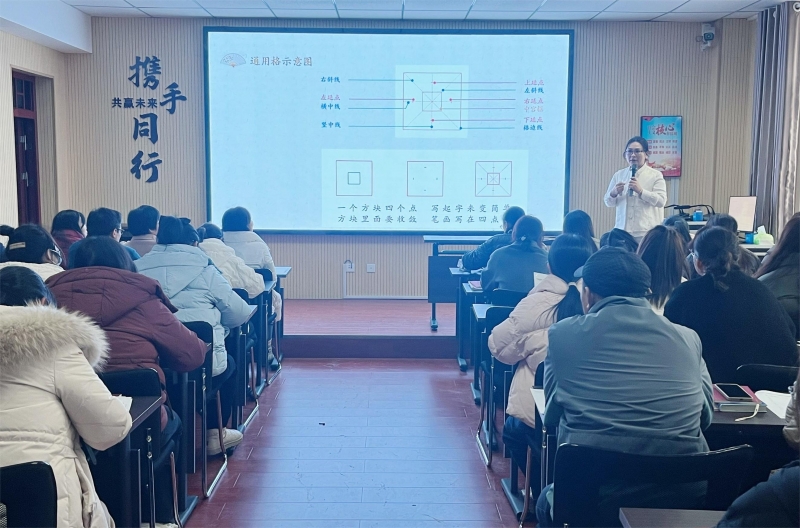 為充分發(fā)揮教師在學(xué)生規(guī)范書(shū)寫中的引領(lǐng)作用,進(jìn)一步提升全體教師對(duì)書(shū)法的認(rèn)識(shí),全面推進(jìn)學(xué)校特色書(shū)法校本課程,3月4日,濟(jì)源市濟(jì)水宣化學(xué)校開(kāi)展書(shū)法校本課程專題培訓(xùn)會(huì)。李小娟副校長(zhǎng)主持本次培訓(xùn)會(huì),許麗娟、楊菲、都小艷老師進(jìn)行主講。