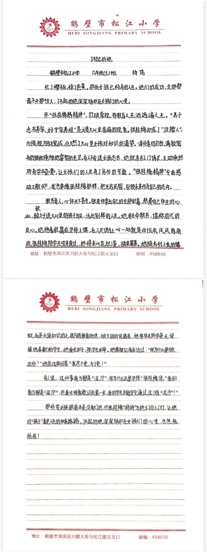 學校圍繞“了不起的她”這一主題開展征文活動,學生紛紛以自己的母親、老師、身邊其他值得尊敬的女性長輩的感人故事為主題,描繪出一個個生動美麗、勤勞善良的女性形象。低年級的小朋友還通過手勢舞表達了對家中女性長輩的感恩與敬愛。