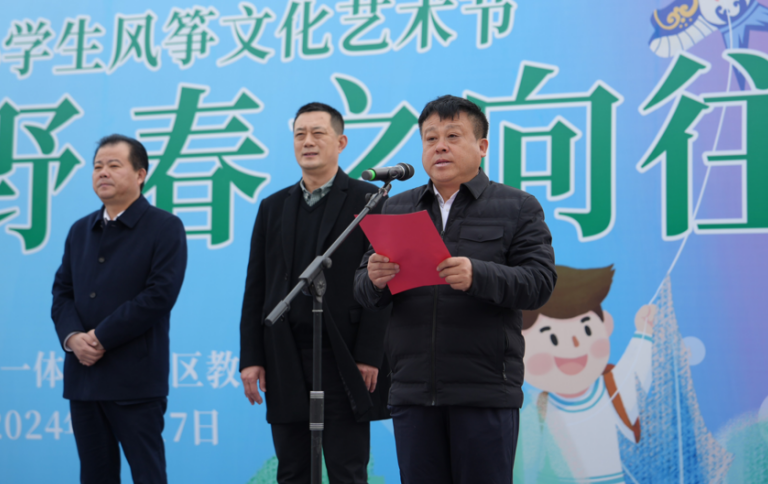 開幕式上,聶愛軍在致辭中表示:示范區(qū)教體局始終堅(jiān)持把立德樹人作為教育的根本任務(wù),全方位推進(jìn)素質(zhì)教育。風(fēng)箏,是我國(guó)古老的傳統(tǒng)民間藝術(shù),它翱翔于藍(lán)天、聯(lián)結(jié)著友誼,寄托著人們對(duì)美好生活的向往。希望同學(xué)們能夠通過今天的活動(dòng),以風(fēng)箏為媒,擁抱自然,放飛夢(mèng)想。各學(xué)校能夠相互學(xué)習(xí)、相互借鑒,為傳承弘揚(yáng)中國(guó)優(yōu)秀傳統(tǒng)文化貢獻(xiàn)示范區(qū)教育力量。