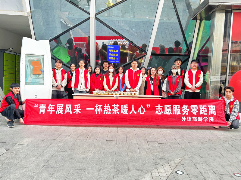 為給這個(gè)春天多注入一些溫情,讓愛意和暖陽(yáng)遍布學(xué)校周邊,進(jìn)一步弘揚(yáng)“奉獻(xiàn)、友愛、互助、進(jìn)步”的志愿精神,提升新時(shí)代大學(xué)生的社會(huì)責(zé)任感,河南經(jīng)貿(mào)職業(yè)學(xué)院外語(yǔ)旅游學(xué)院于3月16-17日,開展主題為“青年展風(fēng)采 一杯熱茶暖人心”的志愿服務(wù)零距離活動(dòng),擦亮學(xué)院青年志愿服務(wù)品牌。
