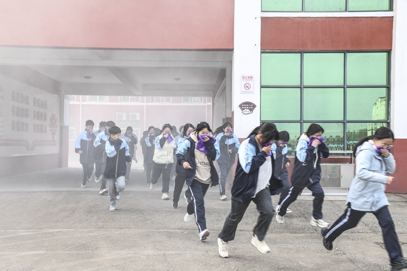 濟源市北海中學學生進行消防應(yīng)急逃生演練