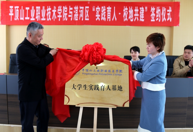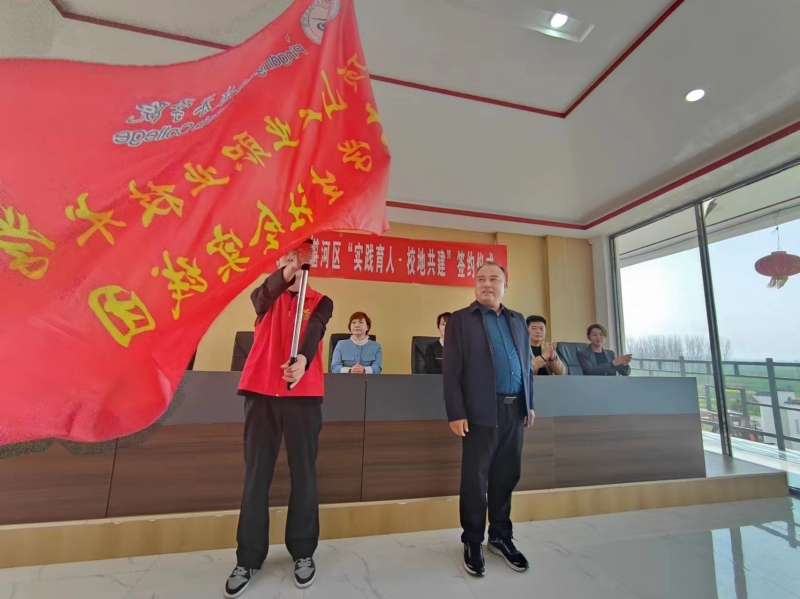 隨后,學校團委負責人與湛河區(qū)團委書記劉茵簽署了《“大學生社會實踐計劃”校地共建框架協(xié)議書》,與曹鎮(zhèn)鄉(xiāng)鄉(xiāng)長程旭共同為“大學生實踐育人基地”揭牌。湛河區(qū)委組織部部務(wù)委員李騫為學校大學生社會實踐團授旗。