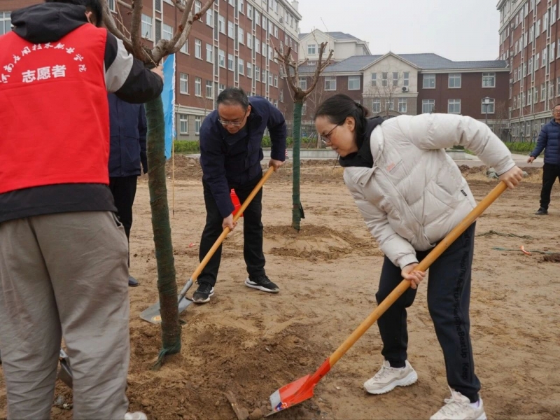 活動現(xiàn)場,全體師生熱情高漲,大家齊心協(xié)力,扶植樹苗、揮鍬鏟土、培實樹根、澆水育苗,每個環(huán)節(jié)都做得認真細致。經(jīng)過數(shù)小時的辛勤勞動,一株株樹苗迎風(fēng)佇立,為校園增添了無盡的生機與活力。